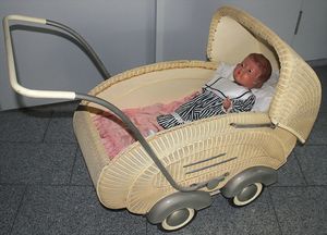 Kinderwagen, 50/60er Jahre, mit etwas Bettzeug, sehr guter Zust., dazu Schildkröt Inge, gem. 64