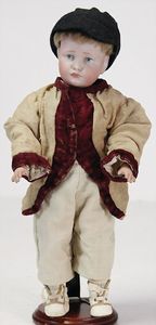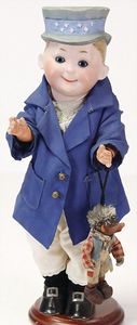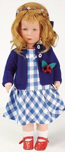 KÄTHE KRUSE Junge, Kunststoffkopf, blonde fest aufgeklebte Echthaarperücke, Stoffkörper, 44 cm, schöne Kleidung