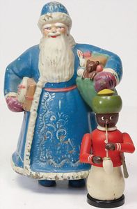 ERZGEBIRGE farbiger Räuchermann, Holz, 50er Jahre, 15,5 cm, 1 Papiermaché-Weihnachtsmann, 25 cm