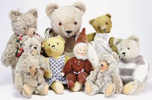 8 Teile Hermann u. andere Bären, 50er – 70er Jahre, untersch. Gr., teils gut, teils bespielt, bitte besichtigen, 1 Zwerg
