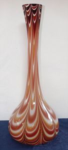 2 außergew. Vasen, Moranostil, 78 cm hoch, 60er Jahre, guter Zust., Hängelampe, Glas bemalt, Messing/Blech, Höhe Glaskörper 45 cm, um 1900