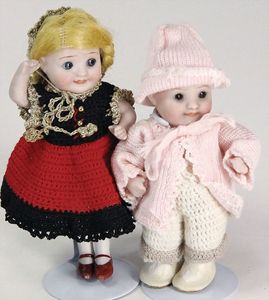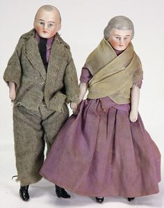 Puppenstubenpuppen, Oma u. Opa, 16,5 cm, Biskuit-Brustblattkopf-arme u. –beine, Stoffkörper, ausgefallen