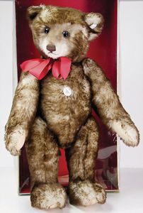 STEIFF Klassik Bär, 1903, ,50 cm, mit Knopf, Schild u. Fahne, Replika, ohne Kart. u. Zertifikat