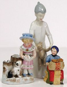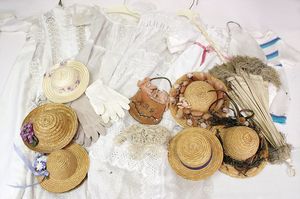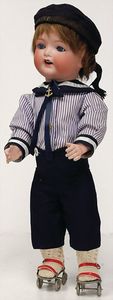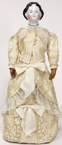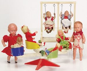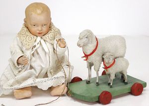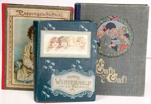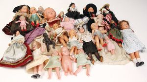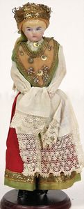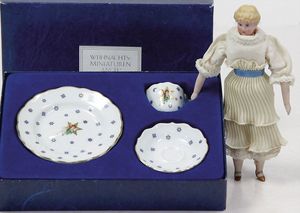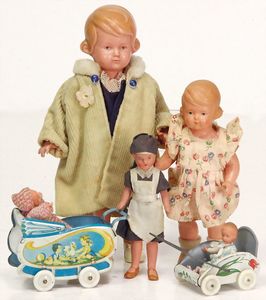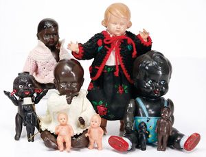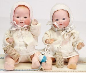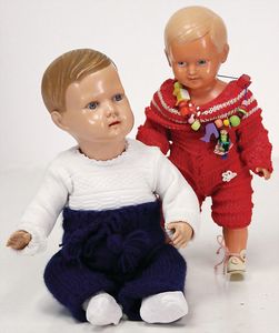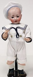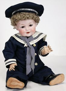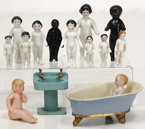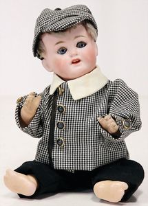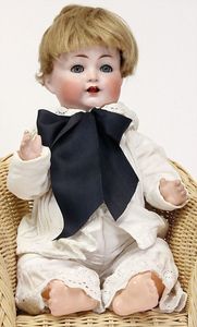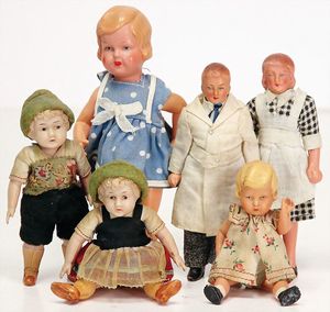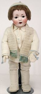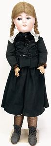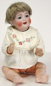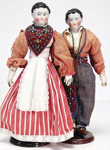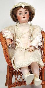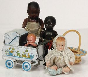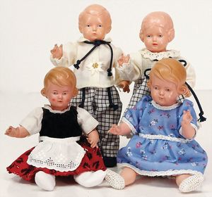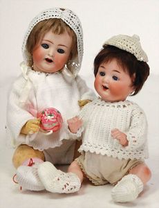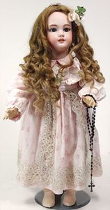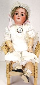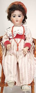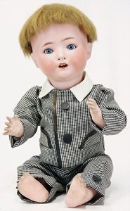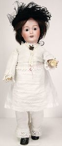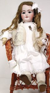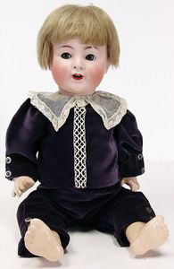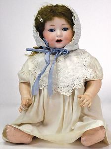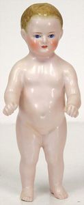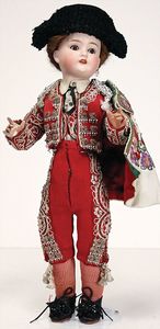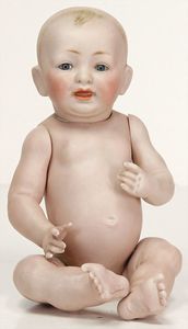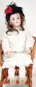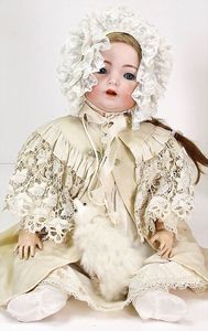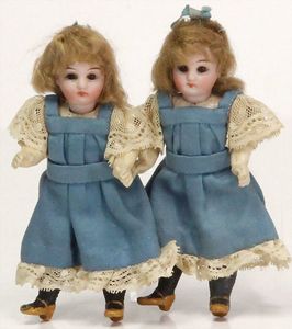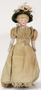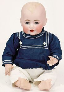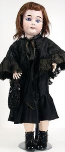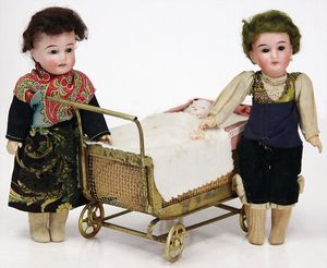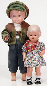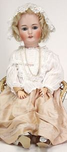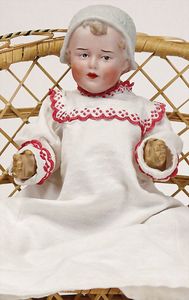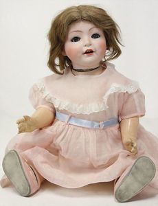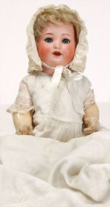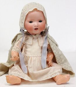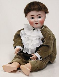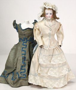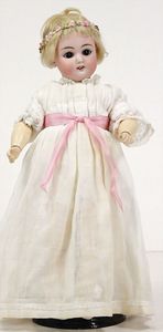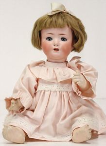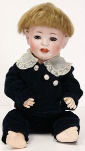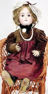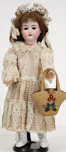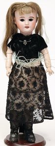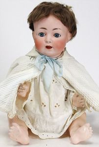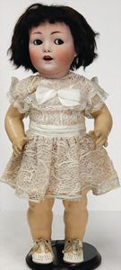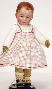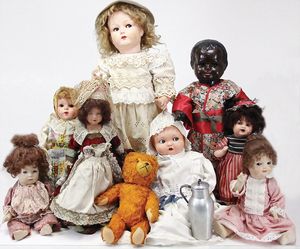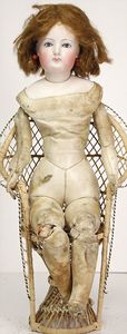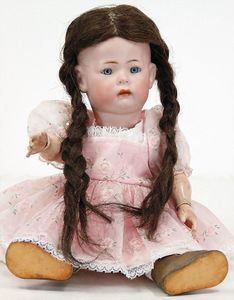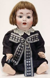 SIMON & HALBIG Biskuitporzellanbrustblattkopf-Puppe, 30 cm, blaue fest eingesetzte Glasaugen, off. Mund, Zähne oben, durchst. Ohren, Lederkörper, Biskuitunterarme, Perücke neuer, 1x Biskuitporzellankopf-Puppe, Heubach 250, braune Schlafaugen, off. Mund, Körper neuer, 27 cm, 1x Massepuppe, AM 378, Rotkäppchen, 27 cm, blaue Schlafaugen, geschl. Mund, Orig.-Perücke, Orig.-Kleidung, Stoffkörper, Massearme