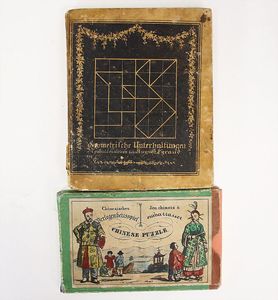 2 Teile chinesisches Puzzle, Gelegenheitsspiel, geometrische Unterhaltungen, Vorlagenbuch, vor 1900
