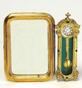 Ausschmückungsteile, Leuchter, Zinn, 5,5 cm, Beistelltisch, 1 Spiegel mit Zinnrahmen, für herrschaftliche Stube oder Modeladen, B: 10,5 cm