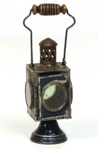 Uralt, Laterne, Blech, altes Märklin-Zeichen, H: mit Griff 14,5 cm, bespielt, altersbed. Lackfehler