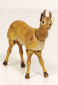 Humpty Dumpty, gr. Serie, Bock, 15 cm, mit Glasaugen, mit Metallknopf, 1 Ohr wohl ergänzt, Schweif fehlt, sonst guter Zust.