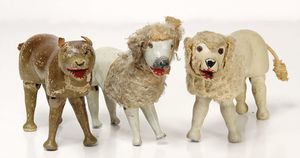 Humpty Dumpty, gr. Serie, 3 Teile Hunde, mit Glasaugen, bespielt, Auge an 1 Hund ergänzt