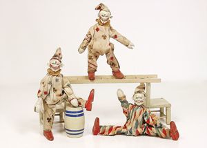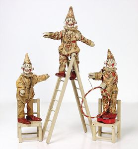 Humpty Dumpty, gr. Serie, 3 Teile Clownfiguren, 22 cm, Orig.-Kleidung, guter Zust., mit Zubehör