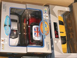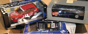 3 Kartons, mit 27 Modellautos, diverse Maßstäbe wie 1:18, 1:43, teils im Orig.-Kart., teils ohne Kart., guter Zust., Hersteller wie Alpina, Revell, Modelle wie Fiat, VW Golf Gti