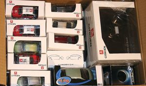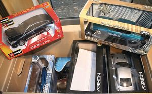 2 Kartons, ca. 24 Modellautos, diverse Maßstäbe wie 1:18, 1:43, 1:24, Hersteller wie Norev, Schuco, Burago, Modelle wie Citroen, Smart Road Star, einige limited editions wie Mercedes Benz A-Klasse, größtenteils im Orig.-Kart., guter Zust.