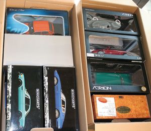 gr. Konv. Automodelle, von Maestro, Road signature?, Road legend, mit einigen Special editions u. Modellen wie Mercedes CLK GTR, Porsche Nr. 1, VW New Beatle, alle im Orig.-Kart., guter Zust.