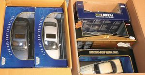 2 Kisten, ca. 20 Modellautos, diverse Maßstäbe wie 1:18, 1:43, Hersteller wie Norev, Anson, Majorette, Modelle wie Citroen C5, Mercedes Benz ML, Mercedes Benz C-Klasse, alle im Orig.-Kart., leichte Gebrauchsspuren, sonst guter Zust.