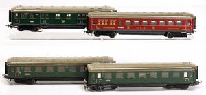 4 Teile H0, 4-achsige Personenwagen, SBB Restaurantwagen, Reisewagen 1. Klasse, guter Zust.