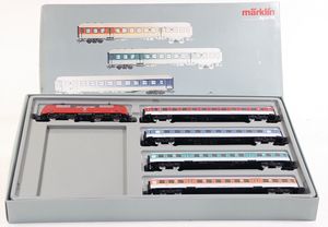 Zugpackung 43032, Deutsche Reichsbahn, Baureihe E44, mit 4-achsigem Personenwagen, ohne Gleismaterial, sonst sehr guter Zust., im Orig.-Kart.