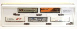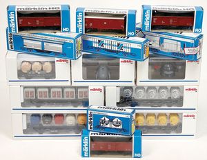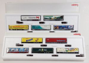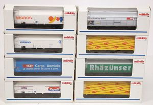 Konv. bestehend aus 8 Güterwagons, 2-Achsig, Spur H0, diverse Bemalungen u. Werbung, Maggi, Rapelli, neuwertiger Zust., im Orig.-Kart.