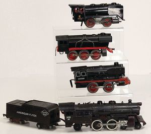 Schlepptenderlok, Spur 0, 2B1, USA, Guss, bespielt, kl. Uhrwerklok, 3-achsig, ohne Tender, 2 Uhrwerklokomotiven ohne Tender, Spur 0, bespielt