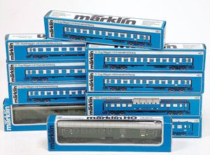 Konv. bestehend aus 10 Personen B-Zug Wagen mit Inneneinrichtung, 4-Achsig, H0, guter-neuwertiger Zust., alle im Orig.-Kart., diverse Nummern wie 4111, 4133, 4052
