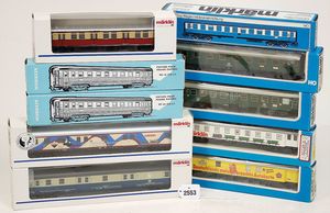 Konv. bestehend aus 10 Personenwagen, H0, 4-Achsig, guter-neuwertiger Zust., im Orig.-Kart., diverse Nummern wie 4145, 4280