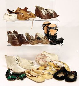 Konv. Puppenschuhe, vers. Gr. u. Materialien, darunter auch 1x mit Absatz