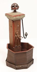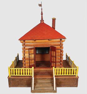 Blockhütte, Grundplatte 62x62 cm, H: 63 cm, Zusammensteckbar, unten Schublade, Tür zum öffnen, nur wenige Stücke bekannt, Holz-Stecksystem, ca. 1920
