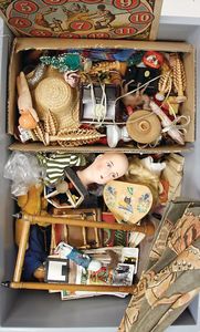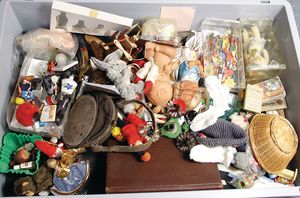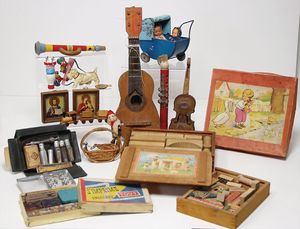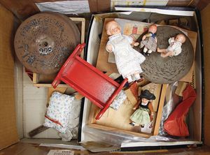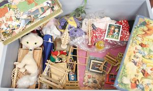 Fundkiste, Erzgebirge, Stofftiere, Spiele, 1 Spiegel, Puppenstubenteile, bitte besichtigen, schönes Händlerkonv.