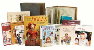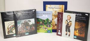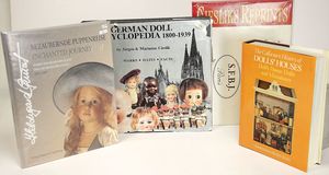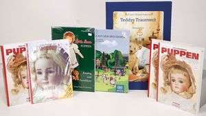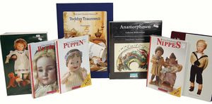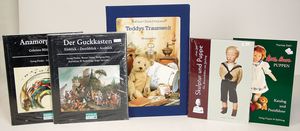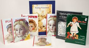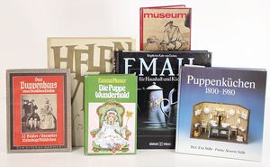 Einige Fachbücher, „Puppenküchen“ von Eva Stille, 1800 – 1980, „Emaille“ von Brigitte von Eicken, Museum für ostasiatische Kunst Köln, „Das Puppenhaus einer deutschen Fürstin“, „Die Puppe Wunderhold“, 1 Songbuch von Helen Vita