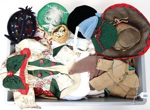 Konv. Puppenkleidung, für kl.-mittlere Puppen, darunter einige Mützen u. Hauben, Strümpfe u. anderes, bitte besichtigen