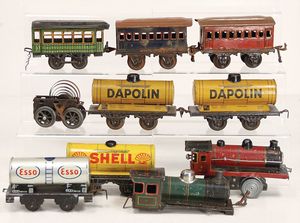 Fundkiste, Ersatzteilspender, Wagen, stärker bespielt, Spur 0, 8 Teile, bitte besichtigen