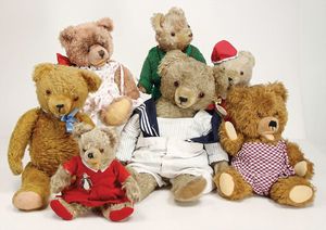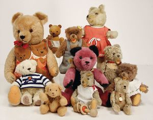 Konv. Bären, versch. Hersteller, bespielt, zw. 15 cm u. 36 cm, (Steiff, Clemens, Hermann)