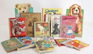 Konv. Kinder- u. Jugendbücher, „Till Eugenspiegel“ von 1914, „Pinocchio“, Widmung von 1957, „Mutz Teddybären Geschichte“, „Kasperle auf Reisen“, „Gullivers Abenteuer“, mit Widmungen von 1920, „Der Urwaldschulmeister von Kamerun“ von Heinrich Norden, „Kopf hoch Schubsl“ von O. S. Heinrich, mit Widmungen von 1939